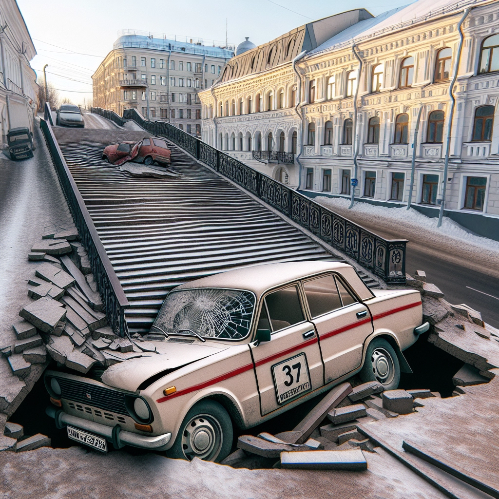 Часть Чкаловской лестницы обрушилась на проезжавший автомобиль — что известно и как себя вести
